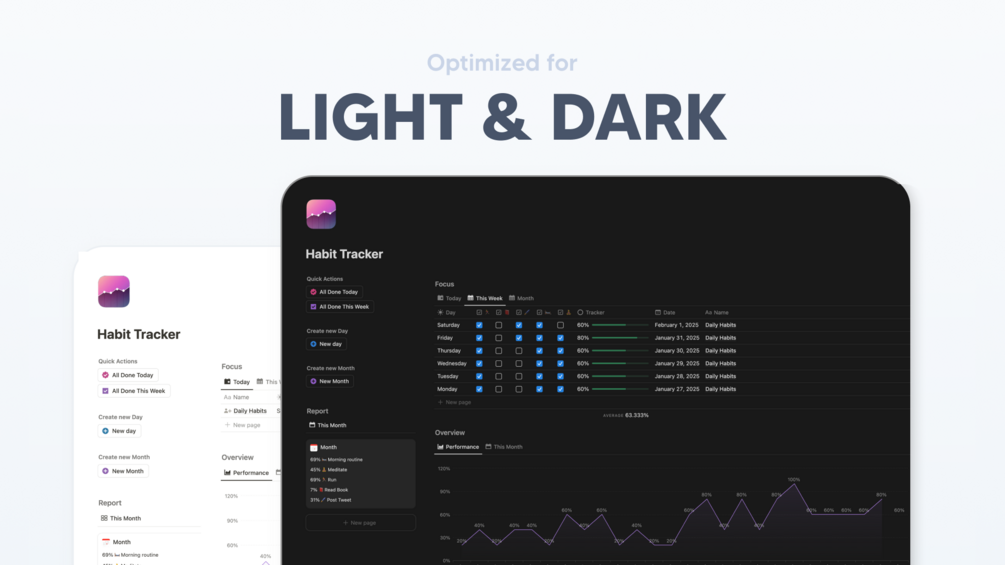 Designed for focus and simplicity, this Habit Tracker is the easiest way to build better routines and stay consistent. Track habits effortlessly. Watch your progress grow. No distractions—just a beautifully designed system that keeps you on track.